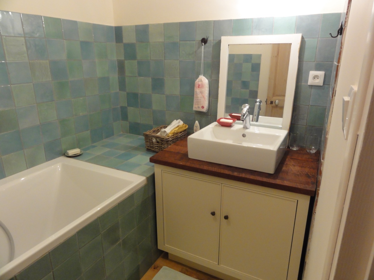 but with all the modern comforts: fully equipped kitchen (dishwasher, Smeg cooker, fridge, ...) new bedding, ...
