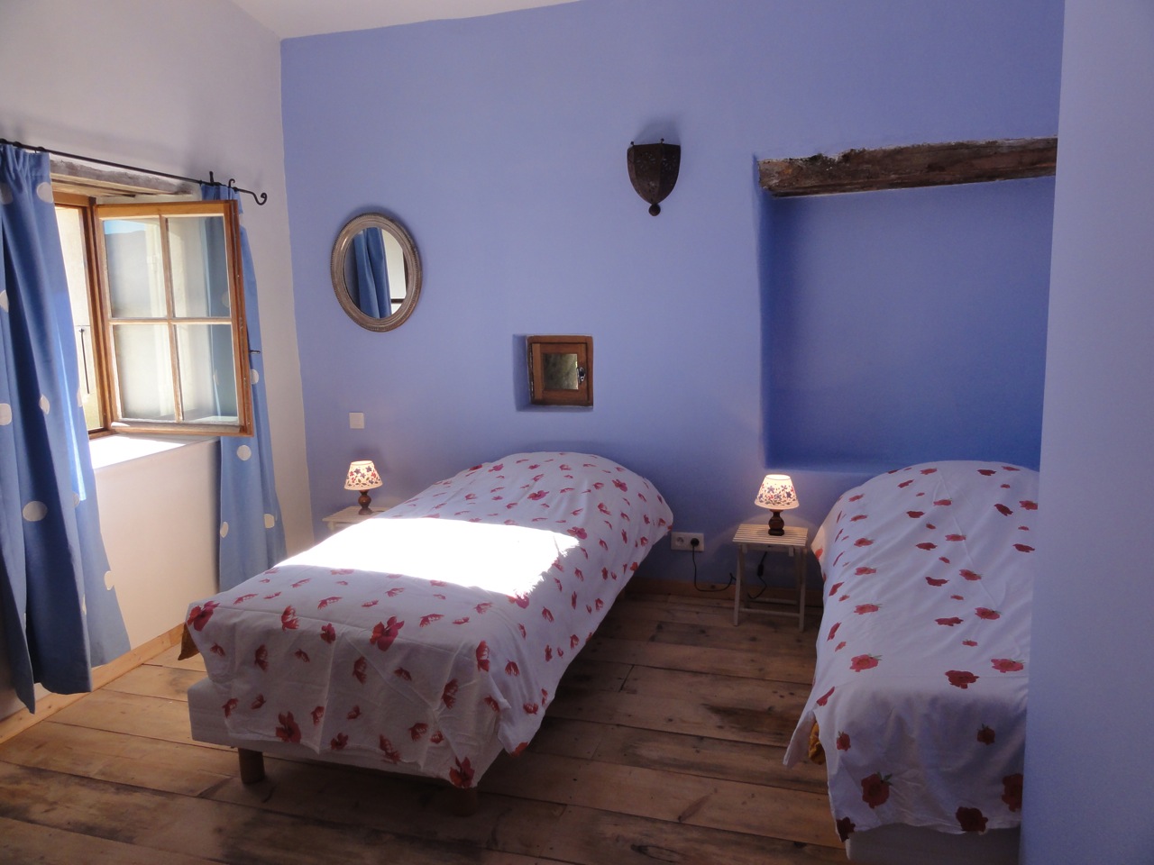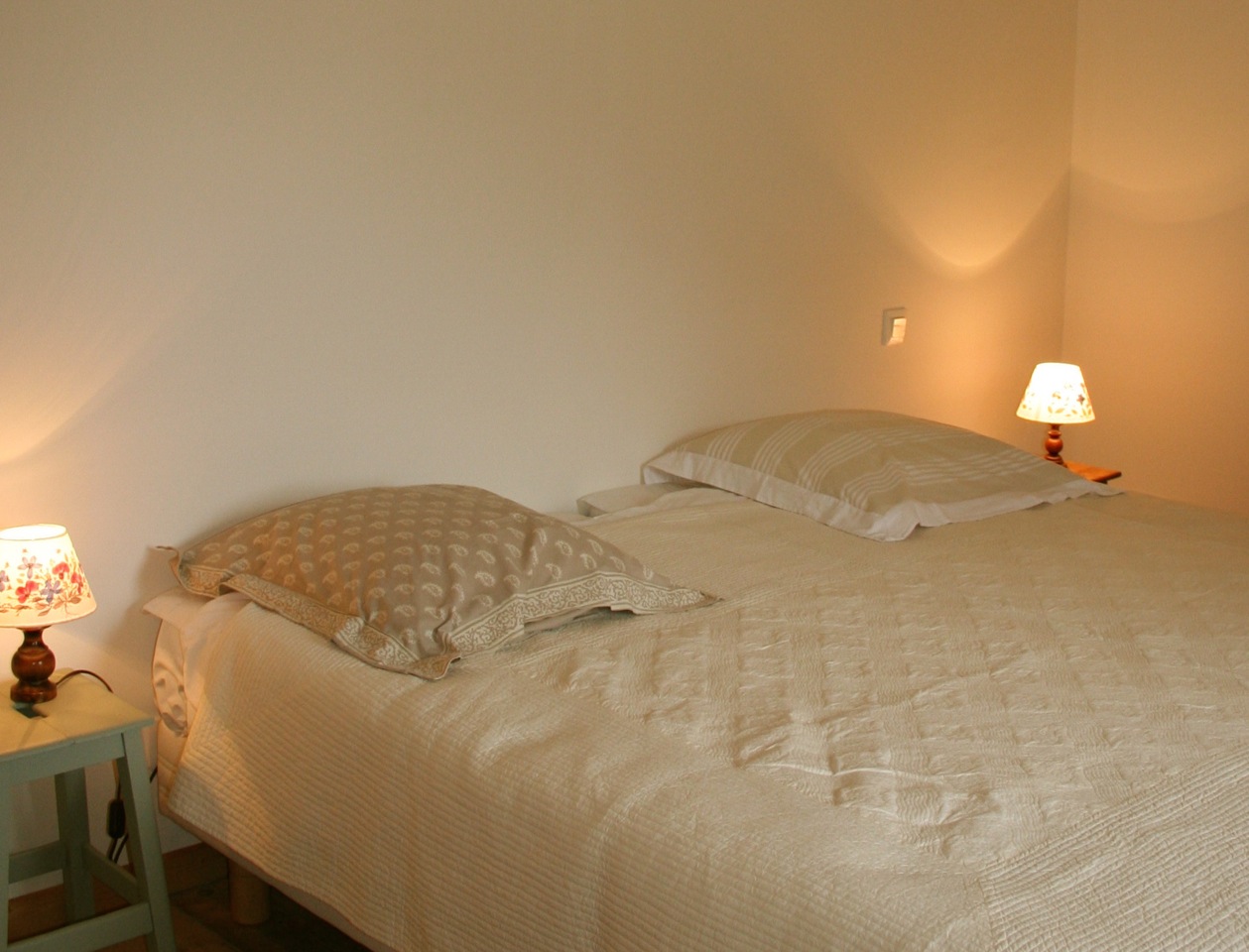 Deux chambres avec deux lits (90cm) ou un lit (de 180cm)Salle de bain (baignoire) , un wc séparé. Une pièce dressing.