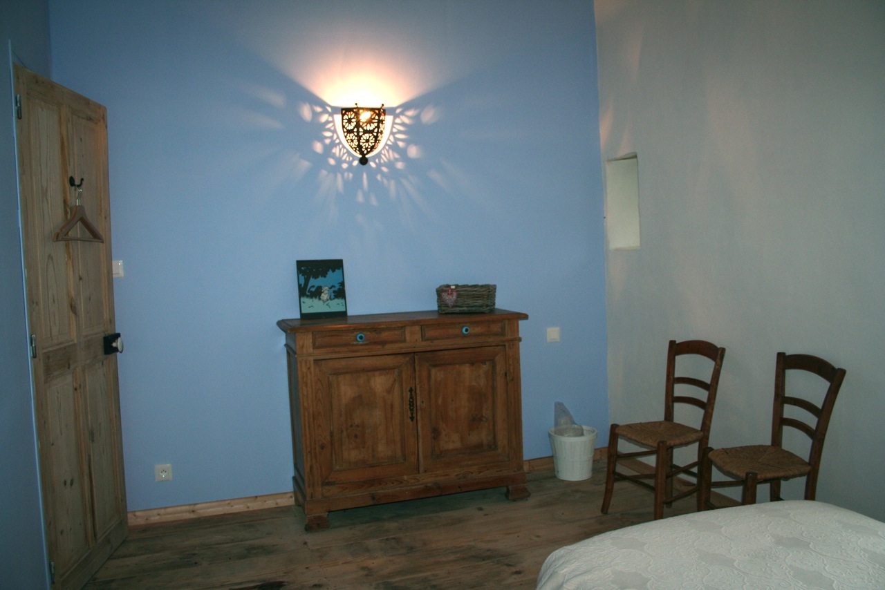 A l'étage : 3 chambres : une chambre avec un lit (160) avec accès privé à une salle de douche et WC.